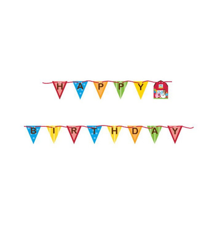 Guirlande "Happy Birthday" de notre thème Farm Fun. Parfaite pour décorer vos murs ou pour accrocher à l'entrée de votre salle pour accueillir vos petits invités! Dimension: 244cm