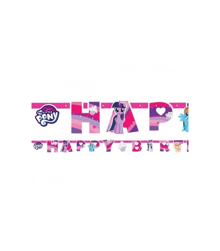 Guirlande "Happy Birthday" de Mon Petit Poney. Parfaite pour décorer vos murs ou pour accrocher à l'entrée de votre salle pour accueillir vos petits invités!