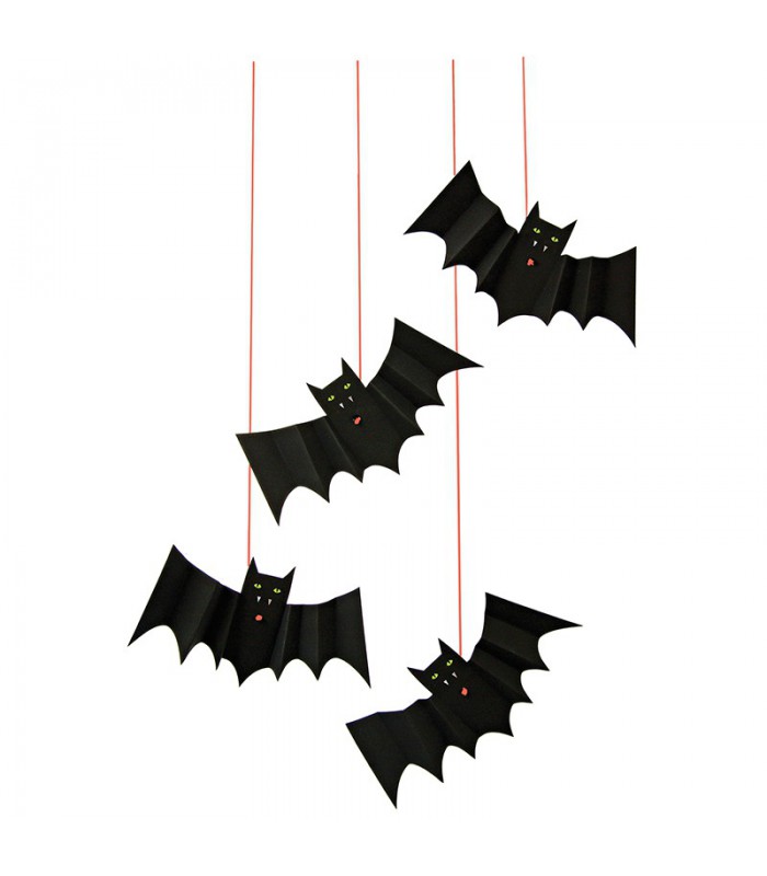 Ajoutez encore plus de frissons à votre fête d'Halloween avec ces redoutables chauves-souris suspendues. Chaque chauve-souris est ornée de papier brillant et livrée avec un fil orange néon pour les suspendre.