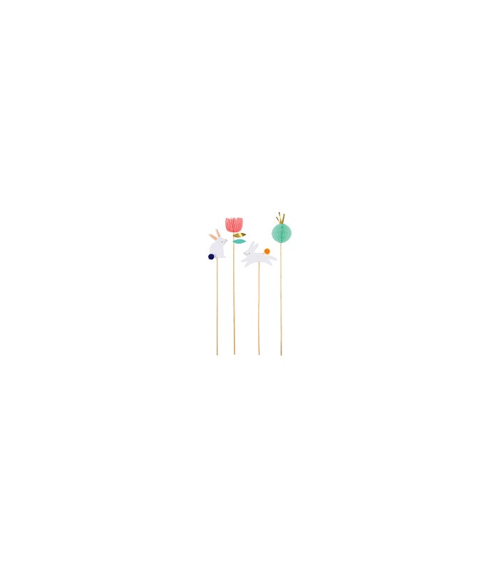 Décorez vos gâteaux et pâtisseries de Pâques avec ces jolis et élégants cake toppers représentant des lapins de Pâques avec des fleurs. C'est le petit plus indispensable et tendance pour tout gâteau et pour clore en beauté un délicieux repas familial. Effet garanti chez les petits et les grands!