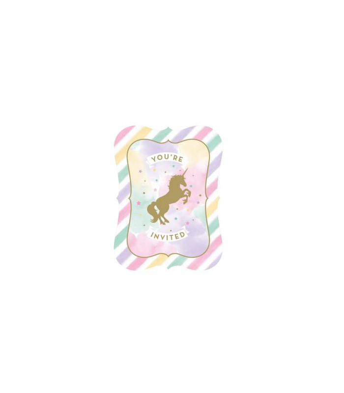 Chaque paquet comprend 8 invitations avec enveloppes de notre thème Unicorn Sparkle.