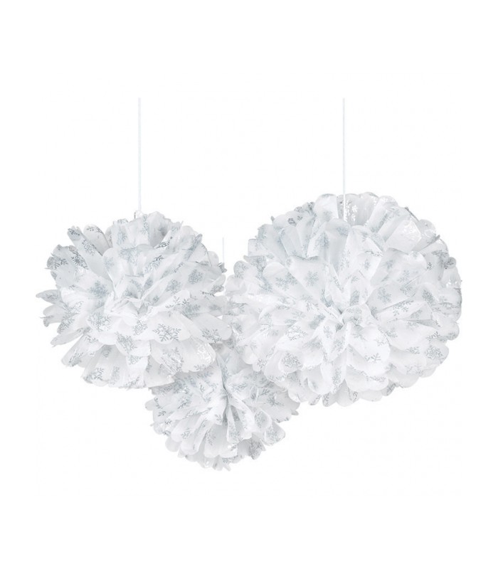 Ils sont faciles à suspendre et peuvent facilement rendre votre espace plus lumineux et festif. Ces pompons s sont imprimés avec des flocons de neige métallisés pour plus de brillance encore!