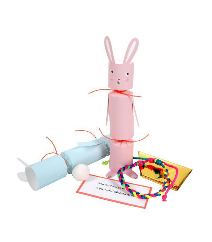 Charmants et très amusants, ces canons à confettis en forme d'adorables petits lapins raviront les enfants! Chaque canon à confetti contient 1 bracelet de l'amitié, 1 chapeau et 1 blague. A déposer sur les assiettes de vos invités pour en même temps décorer la table, à cacher dans le jardin ou la maison lors de la chasse aux oeufs ou tout simplement à offir pour le simple plaisir! Craquez-les et surprise!