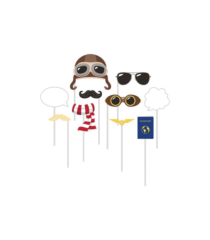 Kit de photo booth avec 10 accessoires différents sur baguettes. Rigolos et sympas pour prendre la pose et pour une ambiance garantie lors de votre fête! Capturez votre grand jour avec des clichés uniques et délirants de vos amis et invités avec ce kit. Fous rires assurés! Le paquet contient 10 accessoires différents.
