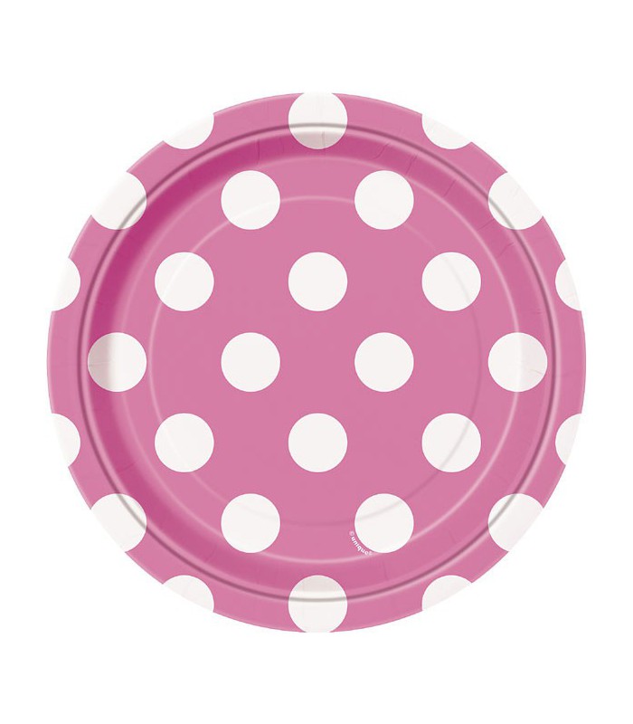 Chaque paquet comprend 8 petites assiettes en carton de couleur magenta à pois. Dimension: 18cm
