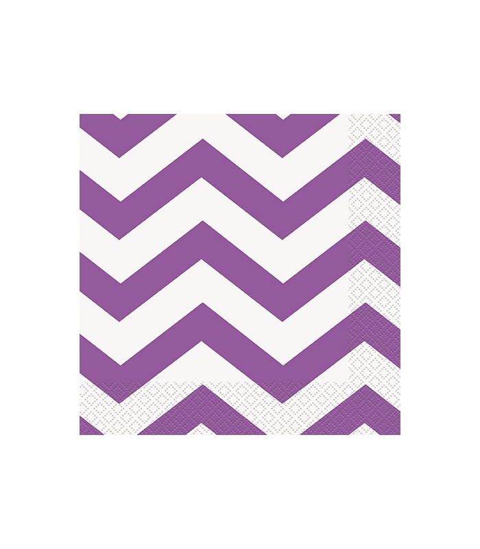 Chaque paquet comprend 16 serviettes de couleur mauve à chevrons. Dimension: 17cm