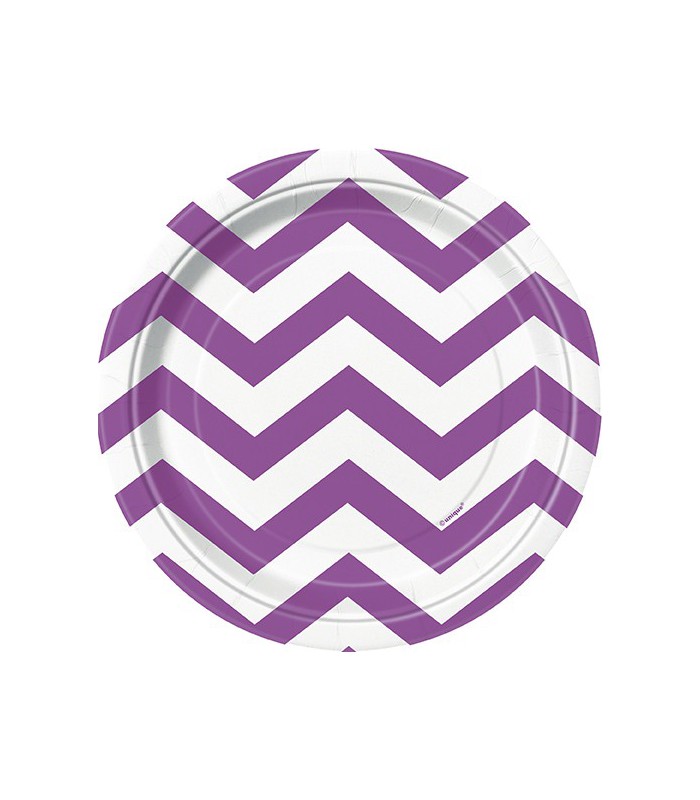 Chaque paquet comprend 8 petites assiettes en carton de couleur mauve à chevrons. Dimension: 18cm