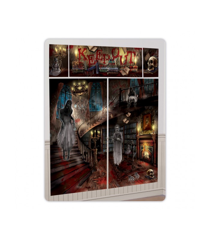 Ce kit de décoration Haunted Mansion Scene Setter va planter le décor "villa hantée" dans n'importe quelle pièce. Il comprend 5 décorations murales plastifiées, et il est parfait comme arrière-plan pour prendre des photos lors de votre prochaine fête d'Halloween !
