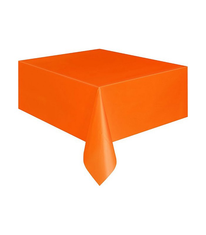 Nappe en plastique de couleur orange. Dimension: 137cm x 274cm