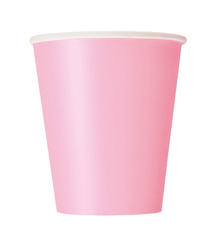 Chaque paquet comprend 14 gobelets en carton de couleur rose.
