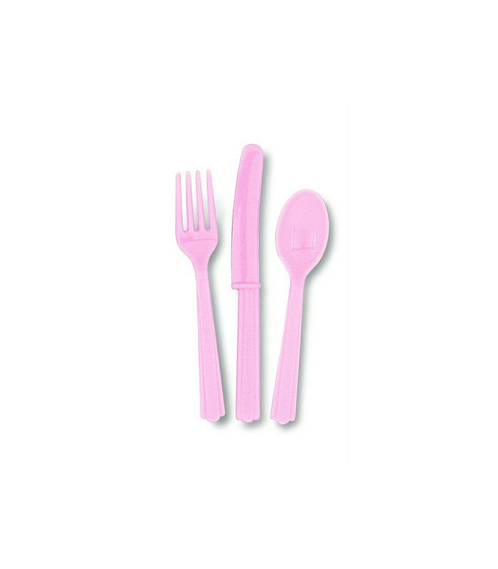 Chaque paquet comprend 18 pièces de couverts en plastique de couleur rose, soit 6 cuillères, 6 fourchettes et 6 couteaux. Lavable et réutilisable
