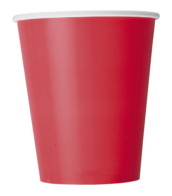 Chaque paquet comprend 8 gobelets en carton de couleur rouge.