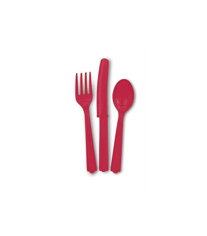 Chaque paquet comprend 18 pièces de couverts en plastique de couleur rouge, soit 6 cuillères, 6 fourchettes et 6 couteaux. Lavable et réutilisable