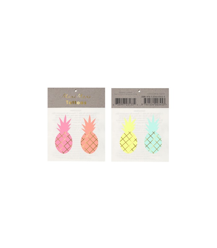 2 tatouages temporaires de la marque Meri Meri cools et design pour petits et grands! Se collent facilement en 30 secondes, durent longtemps et s'enlèvent avec du savon!