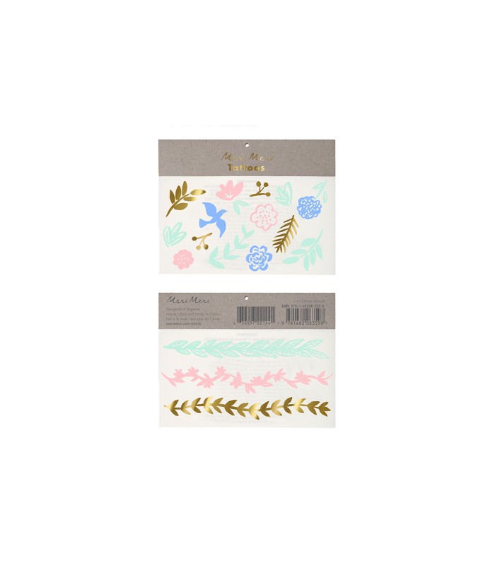 2 tatouages temporaires de la marque Meri Meri cools et design pour petits et grands! Se collent facilement en 30 secondes, durent longtemps et s'enlèvent avec du savon!
