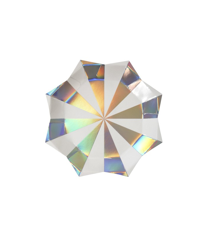 Grandes Assiettes Starburst. Chaque paquet contient 8 assiettes. Un ensemble de 8 assiettes embellies d'un chatoyant papier holographique pour un effet multicolore !