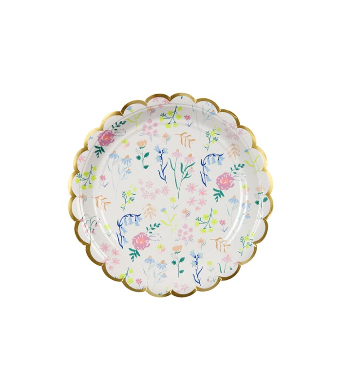 Ces jolies assiettes au délicat imprimé fleuri bordé d'un liseré doré apporteront une touche élégante et poétique à votre fête et égayeront votre table.