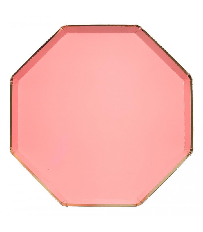 Ces assiettes en carton originales de forme octogonale avec comme détail une élégante bordure dorée dresseront votre table avec style. Avec leurs diamètres généreux, elles pourront également servir d'assiettes de présentation.