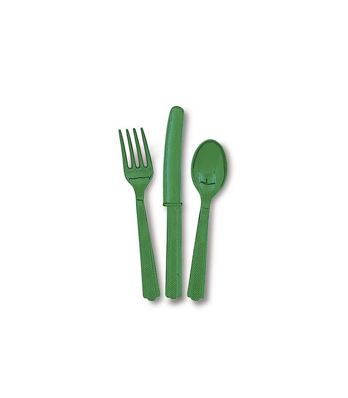 Chaque paquet comprend 18 pièces de couverts en plastique de couleur vert, soit 6 cuillères, 6 fourchettes et 6 couteaux. Lavable et réutilisable